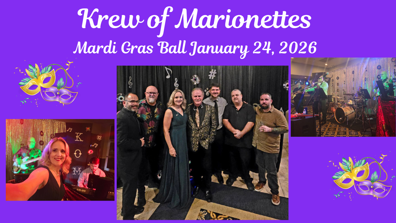 MASS KUNFUZION STEPHEN “PHIN” JONES, GERALD ADCOX, MITZI HOLT, JENNIFER DELGALLO TAYLOR, MIKE VOGEL, STEVE MAPLES, CALEB MACCARTEE, AND JONATHAN CALHOUNShout out to the Krewe of Marrionettes for having us entertain at their 50’s themed Mardi Gras Ball last weekend. They are always a lot of fun and a wonderful group to play for. Happy Mardi Gras Yall!!Even though the thunderstorm cut us short, we had a great time! Thanks to All for coming out!What a great time we had at the Pensacola Beach Elks Lodge last night!! A great group of people who definitely threw a great party!! As usual, we were Kunfuzed Happy New Year. We hope to see you all in 2025!St. Vincent de Paul Alfred Washburn Gala April 5, 2024THANKS TO ALL WHO CAME OUT FOR BANDS ON THE BEACH! WE HAD A BLAST!